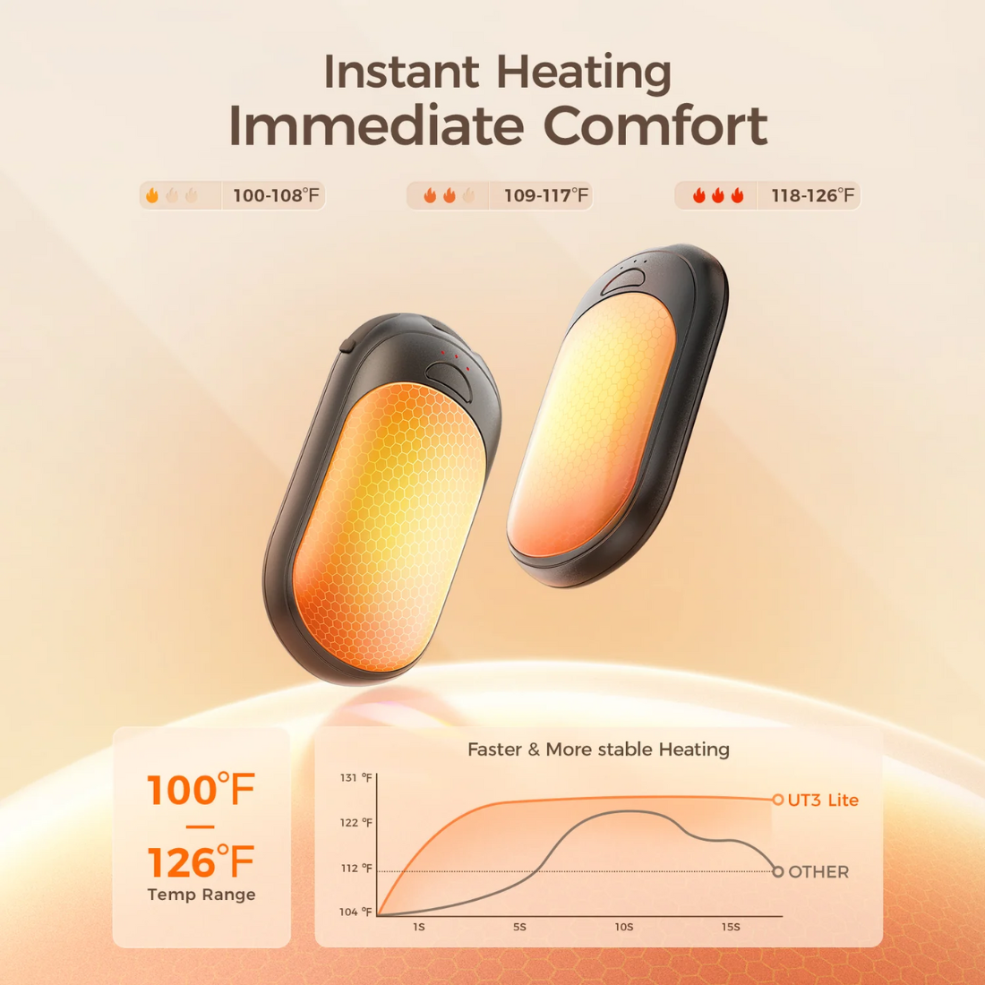 UT3 Lite features built-in magnets that snap two warmers together into a compact, gift-ready design for men and women. - Ultra Light & Slim