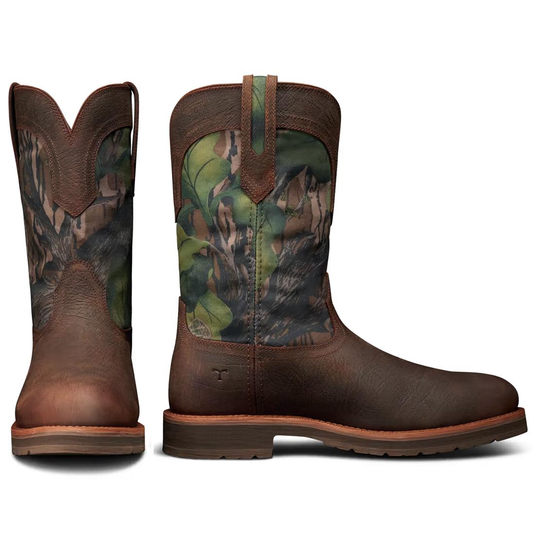 A timeless roper with modern guts, the Rugged Roper is the perfect boot for ranch work but also has the clean lines to wear around town or to the office. Crafted from premium cowhide with a round toe and an 11-inch shaft, it is built for wherever the day takes you. The durable rubber outsole keeps you steady on any terrain, while Mossy Oak’s exclusive Full Foliage print adds a rugged, outdoors-ready edge to your wardrobe.