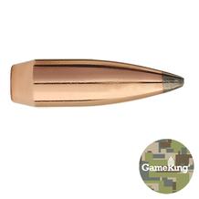 For rifles in 30 caliber, this bullet was designed for medium- to long-range hunting with cartridges having medium to large case capacities for powder. These bullets often display match grade accuracy from accurate hunting rifles. The famous Sierra Spitzer Boat Tail shape assures flat trajectory, excellent resistance to crosswinds and vertical winds, and maximum energy delivery to the target. Good penetration and expansion are characteristic of these bullets even at the reduced impact velocities at long range. With the weight range available, at least one of these bullets will prove ideal for almost any 30 caliber cartridge. The 150 grain #2125 bullet is best suited to medium game at all velocity levels.