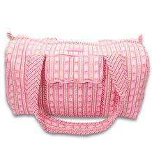 The Quilted Duffle Bag is the perfect carry on or weekend travel bag. It features two top carrying handles, a large main zippered compartment with an interior zippered pocket and two additional pockets, and the Simply Southern logo label.