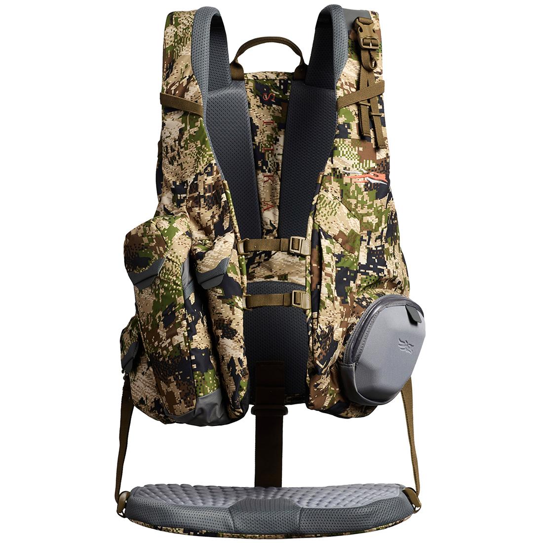 Removable dual-density foam seat deploys, cinches back up and stays harnessed tight to the pack when on the run