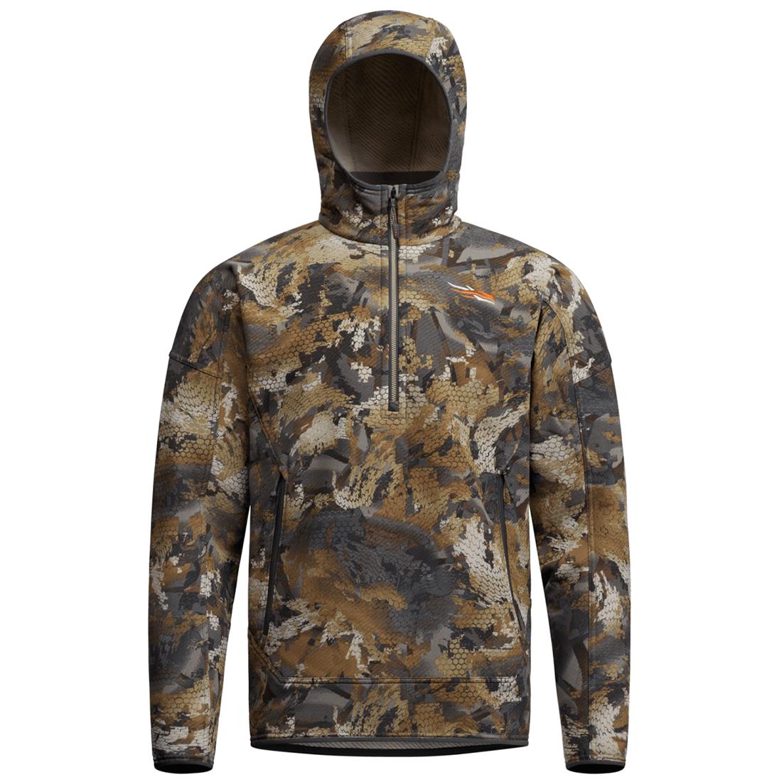A fleece hoodie built to take a beating. The double weave stretch STORMFLEECE handles rugged environments and gusts with ease while a DWR coating mitigates unexpected moisture during the hunt. The Alpha Fleece Hoodie sports a seamless shoulder construction and an intentionally positioned zippered kangaroo pocket to ensure comfort and accessibility while wearing a pack. The low-bulk fitted hood provides coverage without encroaching on field of view.
