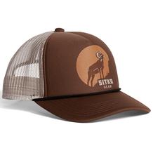If it was easy, everyone would be there. So wear this bighorn salute to the upper sanctum like a badge of honor. Loud and proud on a high-profile foam trucker with a rope accent.