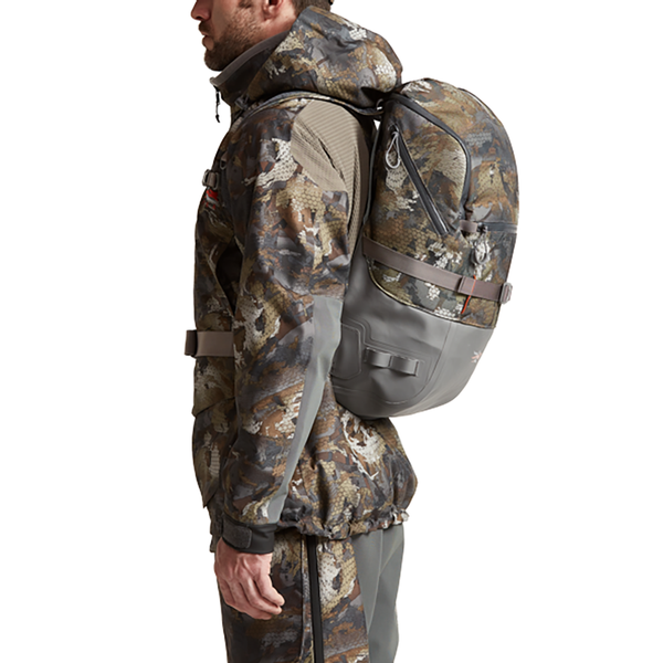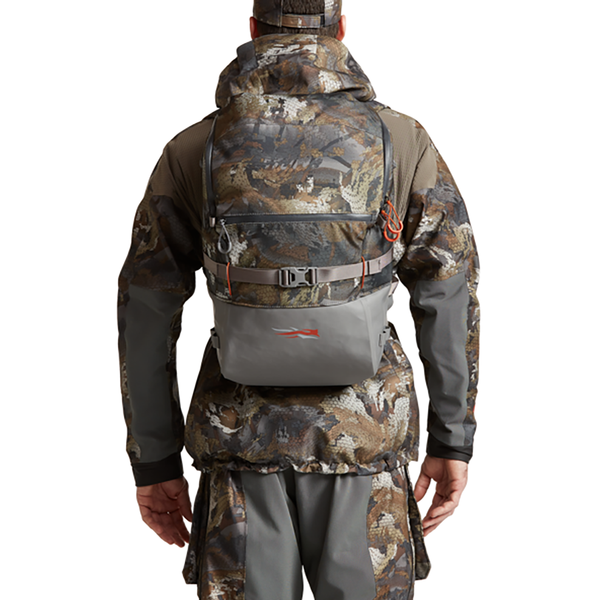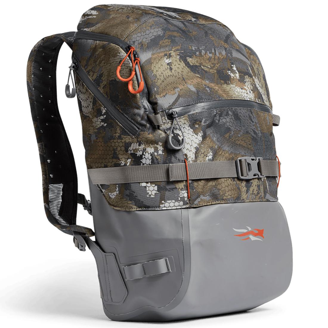 A radical treehugger, the Timber Pack clings to bare trunks to keep your gear (even your gun) safely above the waterline. Unzipped, the large main compartment hangs open, exposing multiple zippered mesh pockets that keep you organized. The welded rubber bottom keeps your gear dry in the bottom of the boat, and the no-muck straps come clean of even the stickiest mud.