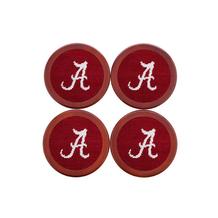 Packaged in sets of four within a polished wooden holder, our needlepoint coasters are a great addition to any coffee table or living room!