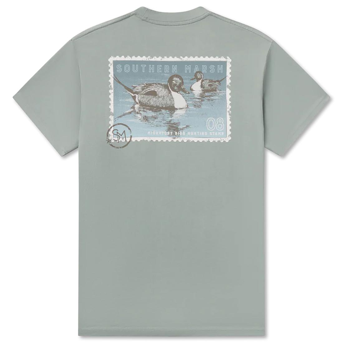 Federal Duck stamps were created to protect the habitats of birds and other wildlife. The short sleeve Duckstamp - Pintail Tee is a nod to this conservation stamp, and features a vintage custom design with two swimming pintail ducks on the back. These comfortable cotton tees have a handy front pocket and come with a printed neck tag for added comfort.