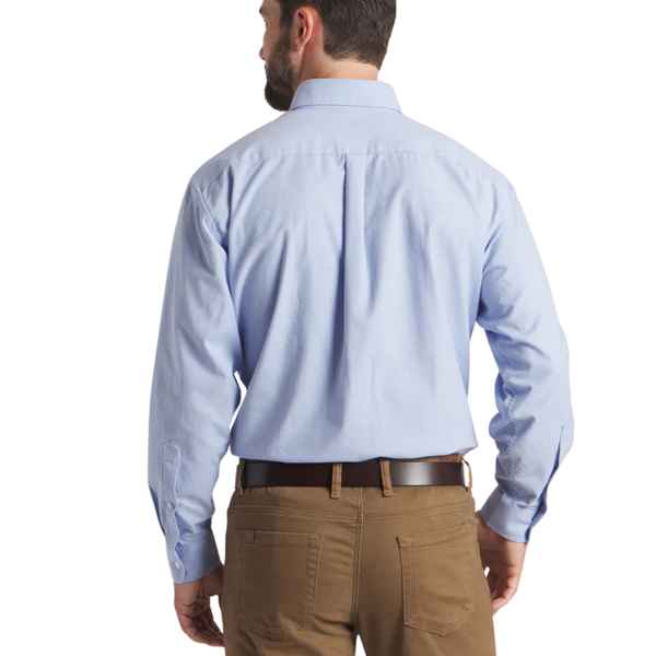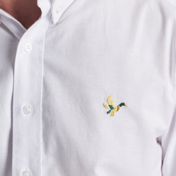 Easily transitioning from the office to a swanky downtown dinner hotspot, the Classic Oxford Dress Shirt features a button down collar and a flying mallard embroidery on the chest. Crafted from a lightweight, poly-cotton stretch blend, this shirt is comfortable for all day wear while keeping you looking fresh and polished throughout the day.