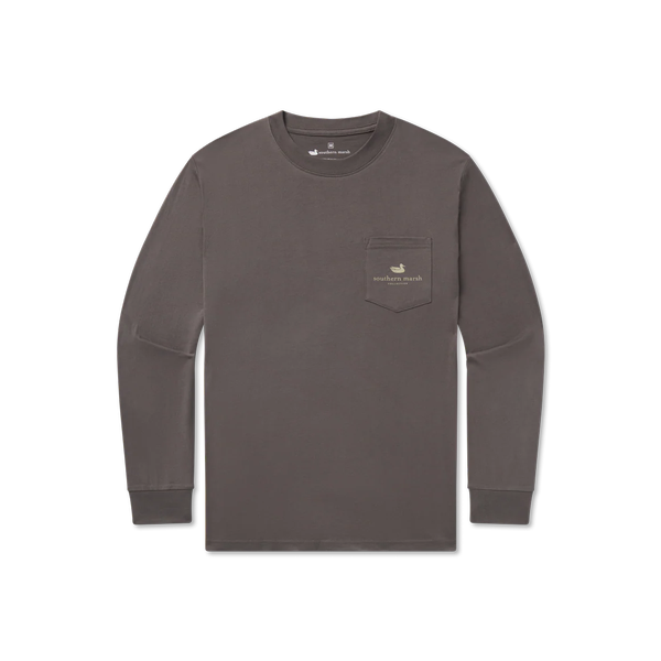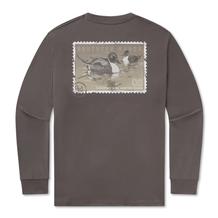 Federal Duck stamps were created to protect the habitats of birds and other wildlife. The long sleeve Duckstamp - Pintail Tee is a nod to this conservation stamp, and features a vintage custom design with two swimming pintail ducks on the back. The comfortable cotton tees have a handy front pocket and come with a printed neck tag for added comfort.