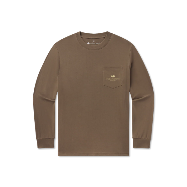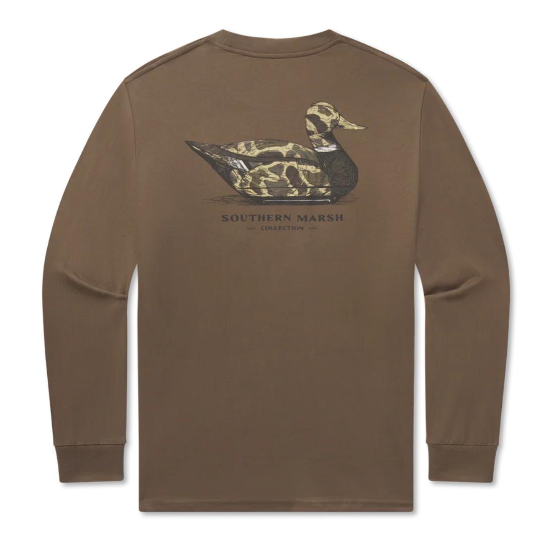 Bringing together a classic wooden decoy and the love for all things camo, the Vintage Duck Decoy Tee - Camo is perfect for the outdoorsman. Featuring a custom, camo pattern depicted on a classic duck decoy design, our comfortable, long sleeve tee has a handy front pocket and comes with a printed neck tag for added comfort.
