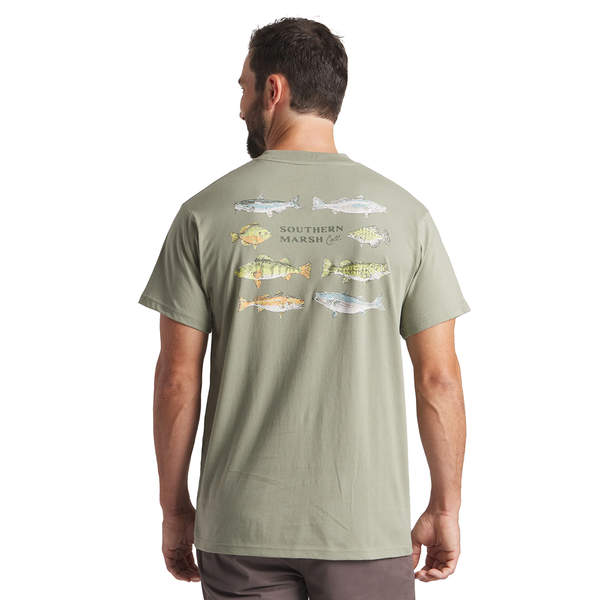 If fishing is life and you're always looking to cast a line, the Southern Swimmers Tee is designed for you. This ready to wear, lightweight tee showcases some of the most popular swimmers in full color design on the back. These comfortable cotton tees have a handy front pocket and come with a printed neck tag for added comfort.
