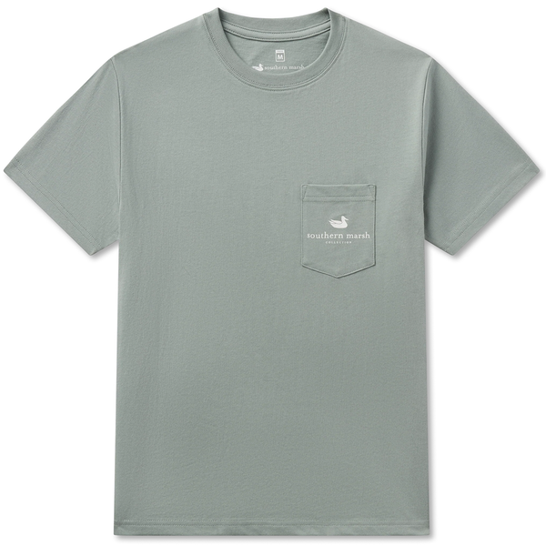 Federal Duck stamps were created to protect the habitats of birds and other wildlife. The short sleeve Duckstamp - Pintail Tee is a nod to this conservation stamp, and features a vintage custom design with two swimming pintail ducks on the back. This comfortable cotton tee has a handy front pocket and comes with a printed neck tag for added comfort.
