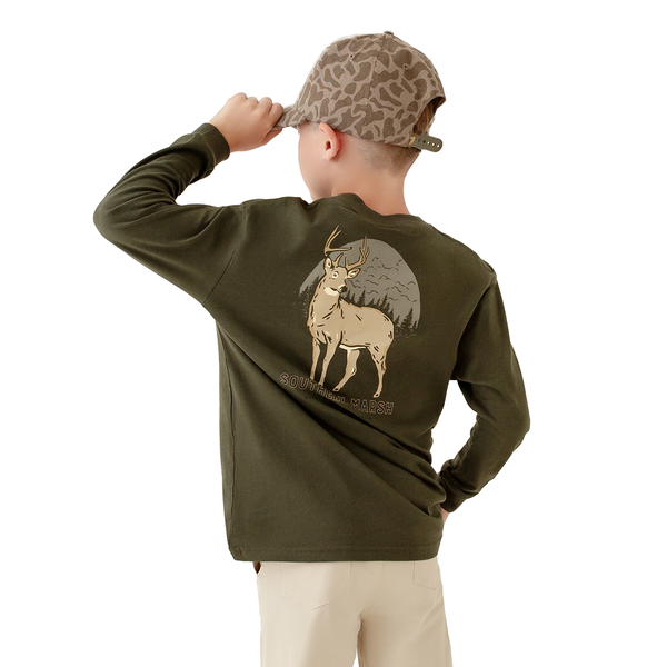 Designed for the aspiring huntsman or young nature enthusiast, the long sleeve Youth Eight Point Tee boasts a custom Eight Point Buck design on back. These comfortable cotton tees have a handy front pocket and come with a printed neck tag for added comfort.