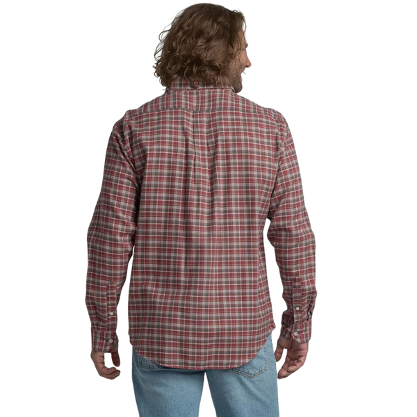 Details like a button-down collar, neatly tailored cuffs, and a buttoned chest pocket keep things classic, while back pleats and a touch of stretch give you room to move. The custom plaid patterns—designed in-house—have a vintage look with everyday wearability, making this shirt perfect for cool mornings, casual Fridays, or post-hike drinks.