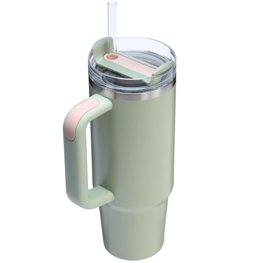 This Quencher H2.0 is generously sized (but not oversized) with an easy-carry, comfort-grip handle and a narrow base that will fit most cup holders. Durable 30 oz tumbler made with recycled stainless steel The double-wall vacuum insulation will keep your water cold for 9 hours and iced for 40 hours. And to cap things off, there’s an advanced FlowState™ lid that features a rotating cover with three positions: a straw opening designed to resist splashes with a seal that holds the reusable straw in place, a drink opening, and a full-cover top.