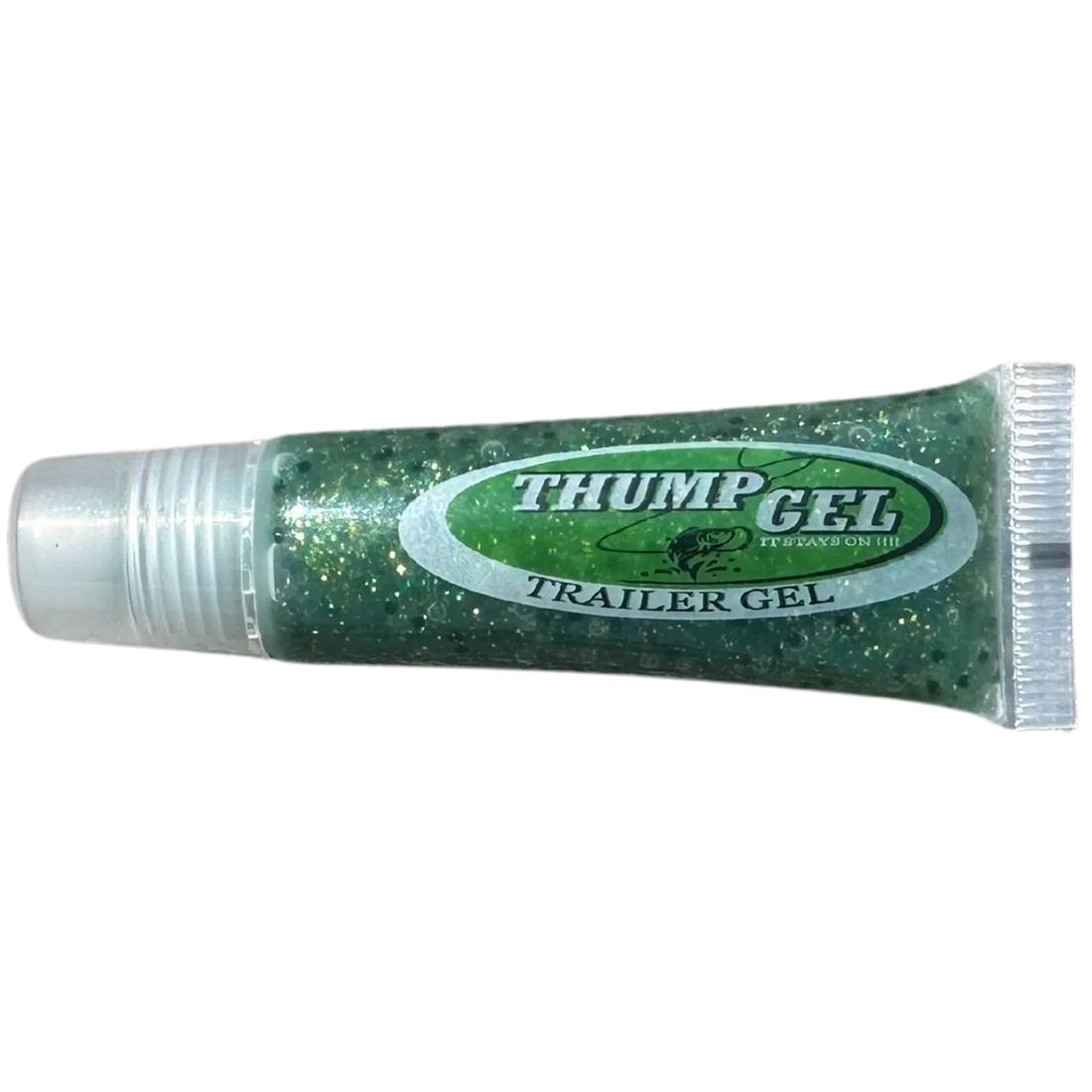 For all your soft plastics and trailers while Bass fishing and Crappie fishing. Dark Green sticky gel formulated fish attractant with Black/Gold flake flash effect, scented with a taste that helps fish commit and crush it. STAYS ON your bait longer making THUMP GEL Trailer Gel one of the best natural bait scent fish attractants on the water today.