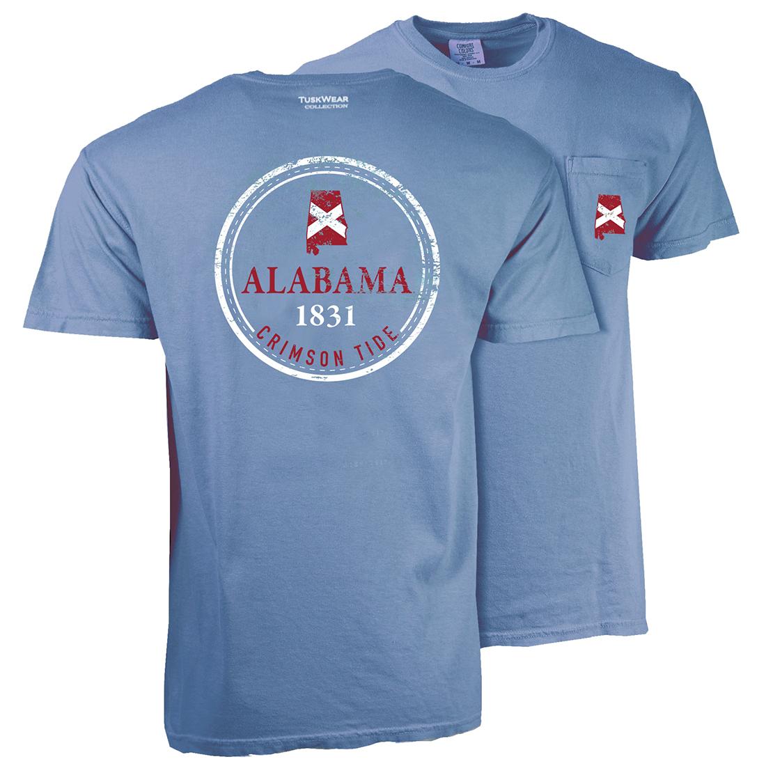 Features the Circle Badge II (2 Color) design on back; and the State Profile filled with the State Flag on front pocket.