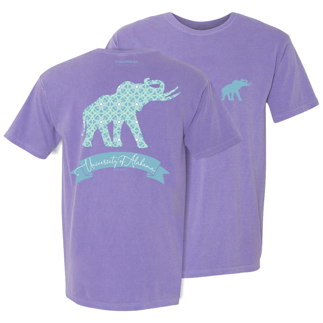 Features the Kaleidoscope Alabama Elephant 1 design on back and the Tuskwear Elephant on front left chest.