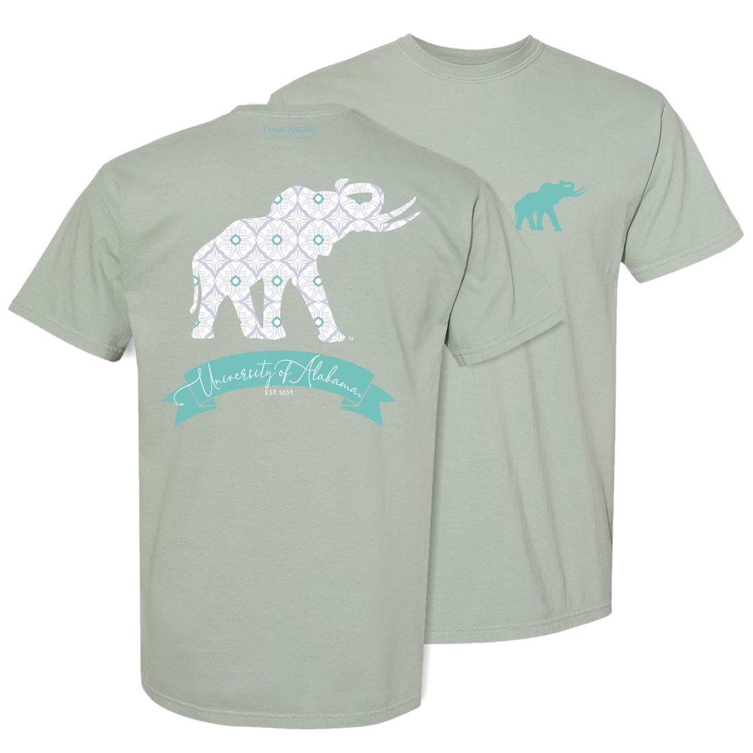Features the Kaleidoscope Alabama Elephant 2 design on back and the Tuskwear Elephant on front left chest.