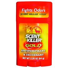 The Scent Killer Gold Antiperspirant and Deodorant by Wildlife Research Center is super effective against underarm perspiration and odor. The unscented formula is great at combating unwanted odors. NET WT 2.25 oz.