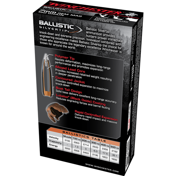 Ballistic Silvertip ammunition provides hunters proven immediate knock-down and extreme precision. Innovation combined with engineering excellence makes Ballistic Silvertip the choice for those who appreciate the legendary excellence Winchester is known for around the world.