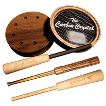 WoodHaven Pot Turkey Calls have been leaders in sound quality for over a decade. The Carbon Crystal by WoodHaven is made of American walnut with a pure-crystal calling surface and a carbon-fiber resonator for a more authentic hen sound. Carbon-fiber resonator isn’t damaged from temperature or moisture. The Carbon Crystal comes with three strikers – laminated flare-tip, hardwood, and cutt and cackle – conditioning stone, and surface-saver lid.