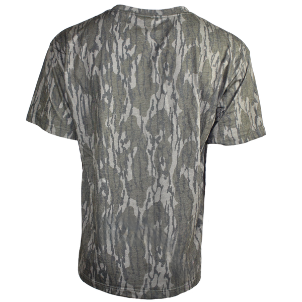 Mossy Oak Washed Out Bottomland and Fall Foliage SS Tee with the Go Hunt design on front in larger print, and the Woods & Water Logo in smaller print also featured on the front.