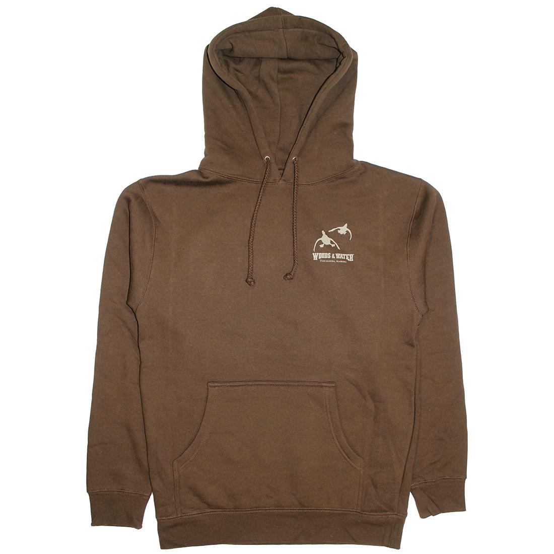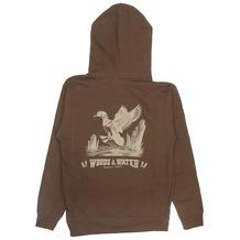Woods & Water Hoody with Wood Duck on Back and Flying Ducks logo on left front.