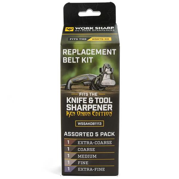 Replacement abrasive belt assortment for the Ken Onion Edition Work Sharp Knife & Tool Sharpener (WSKTS-KO) only.