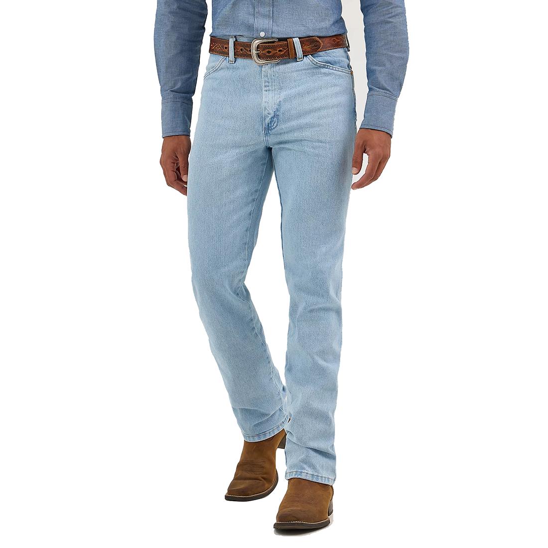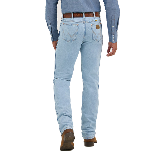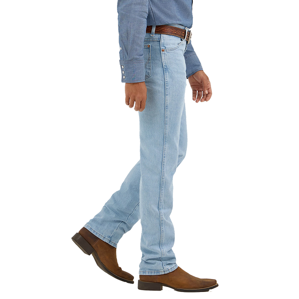 Wrangler® Cowboy Cut® jeans are a tried-and-true wardrobe staple for cowboys who demand a lot from their everyday clothes. These men's jeans come with every feature you could need, including the classic neolite patch, five-pocket styling, and that signature 'W' stitching you know and trust. What makes the jean a must-have for every modern cowboy is its slim silhouette through the seat, thigh, and knee. Whether dressed up for a special occasion or dressed down for a backyard barbecue, these men's Cowboy Cut® Wrangler jeans will keep you comfortable all day long without compromising style.