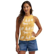Take the reins on summertime with this Women’s Wrangler Retro® Slim Fit Goddess Tank. It features a high-cut neckline, a sleeveless silhouette, and a slim fit for an easy, flattering choice on sunny days. It's crafted from rayon with just a hint of stretch to keep you extra comfortable. This tank also features a cool graphic print of galloping horses.