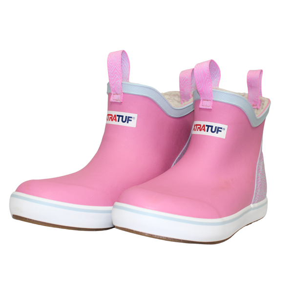 The Ankle Deck Boot is one of XTRATUF’s most iconic silhouettes due to its versatile design and Alaska proven performance. Now available in popular kids sizes for the toughest youth out there. The Kids ADB is the first slip resistant, non-marking rubber boot on the market designed specifically for young anglers. And the new Kids Trolling Pack styles feature a faux shearling lining for added warmth and comfort during cold weather.
