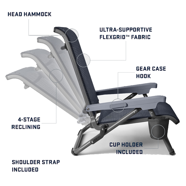 - Multiple reclining positions and waterfall headrest offer maximum comfort and nap-ability