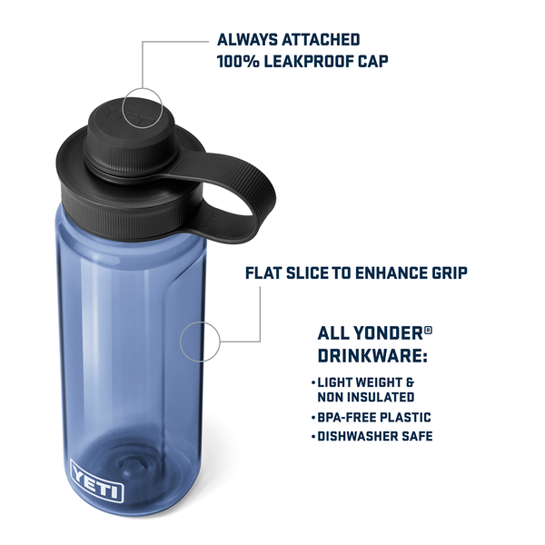 - Compatible with all Yonder™ accessory caps & small Bottle Sling (both sold separately)